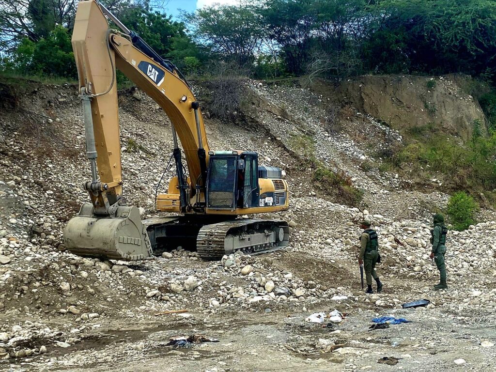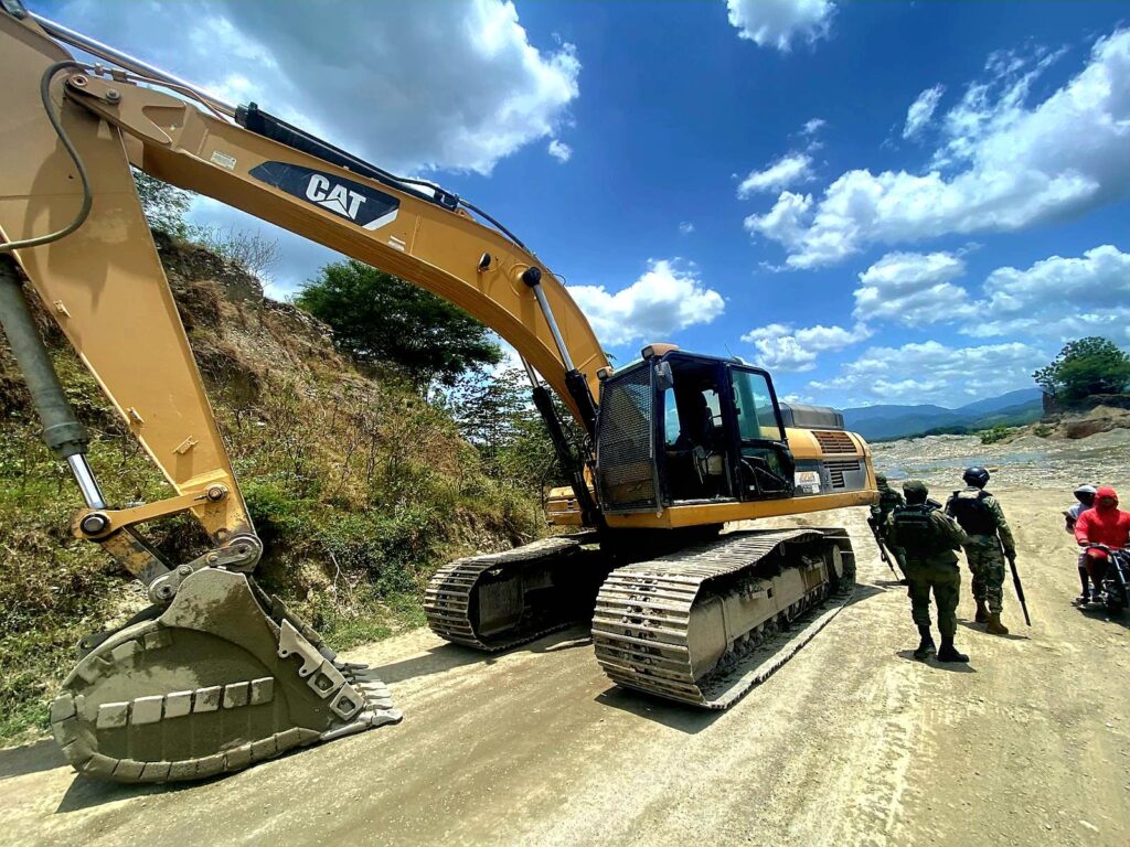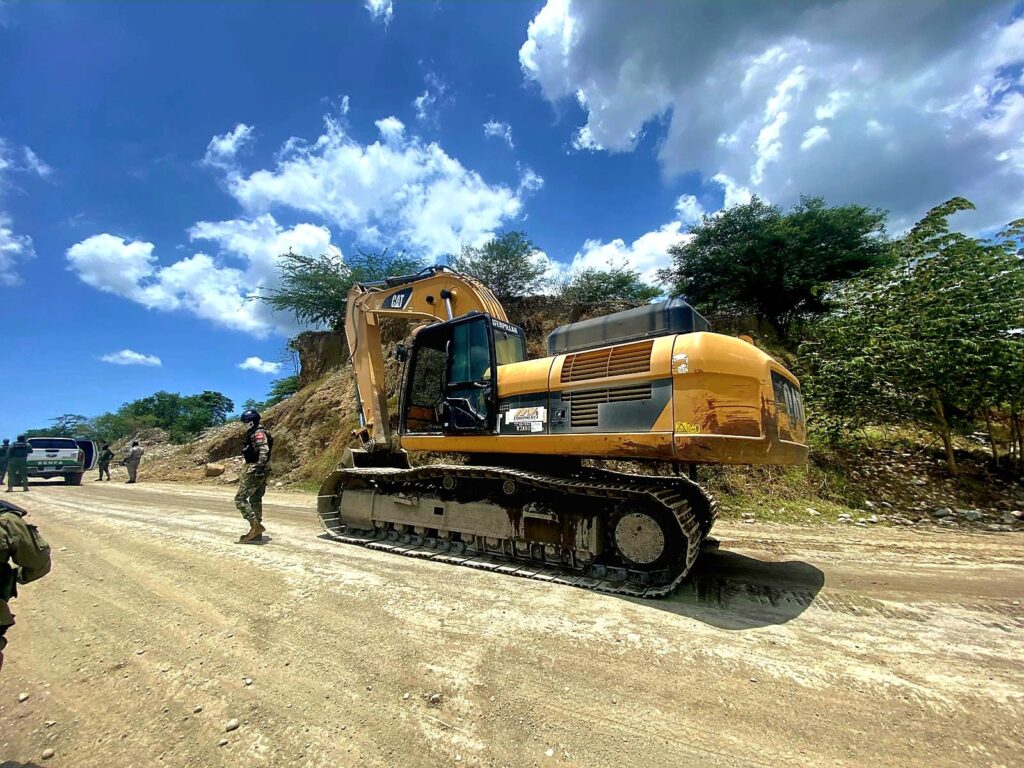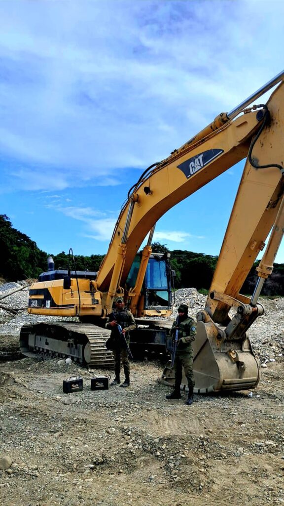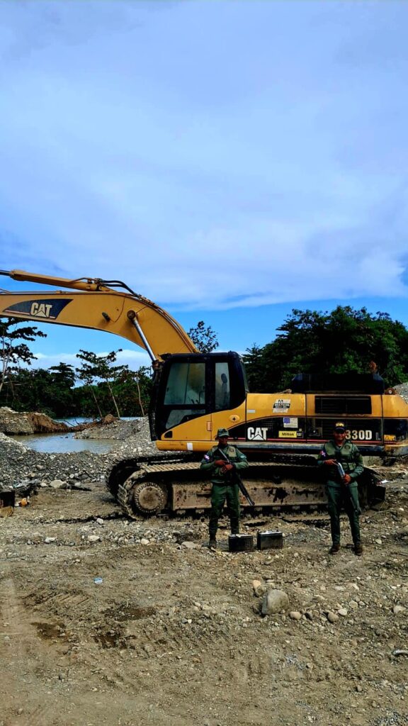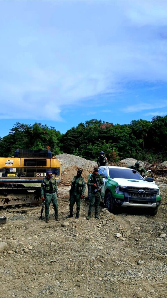 Peravia, R.D. –El Ministerio de Medio Ambiente y el Servicio Nacional de Protección Ambiental (SENPA), en cumplimiento de su misión de velar por los recursos naturales y el cumplimiento de la ley ambiental, llevaron a cabo este viernes un operativo de inspección, supervisión y vigilancia en el sector Pizarrete del municipio Baní, provincia Peravia, tras recibir una denuncia sobre la extracción ilegal de material de la corteza terrestre en el área. La intervención fue realizada por personal de SENPA bajo la dirección del Subdirector Regional I, acompañados del director provincial de Medio Ambiente en las coordenadas (18.3148769, -70.2261671), logrando ubicar seis maquinarias pesadas —cinco excavadoras marca CAT y una Volvo de color amarillo— operadas por individuos no identificados que, al notar la presencia militar, emprendieron la huida. Como parte de las medidas cautelares, fueron retiradas doce (12) baterías de encendido de los equipos, las cuales fueron trasladadas a la Dirección Provincial para los fines legales correspondientes. Las maquinarias permanecen en el lugar hasta que lleguen los equipos necesarios para su traslado. EL SENPA y Medio Ambiente han dispuesto una vigilancia permanente en la zona con el propósito de impedir que desaprensivos continúen afectando este importante afluente acuífero.