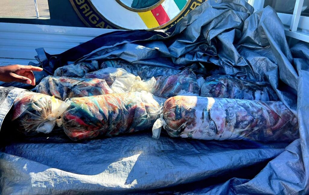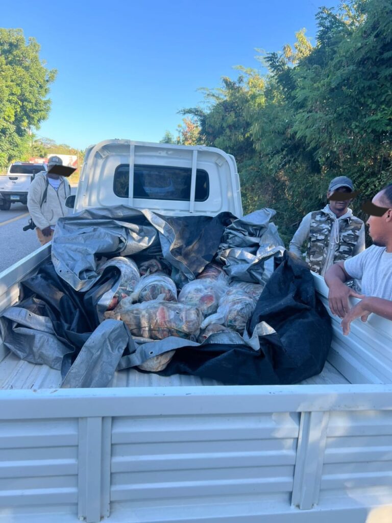 Provincia Barahona.- Agentes del Servicio Nacional de Protección Ambiental (SENPA) acompañados por miembros del Ejército de República Dominicana y personal del Ministerio de Medio Ambiente, incautan unas 500 libras de Pez Loro, detienen dos personas y retienen una camioneta marca Changan, color blanco, en la que era transportado el cargamento ilegal pescado. La incautación se realizó en el cruce de “Santa Elena”, provincia Barahona, cuando los detenidos se desplazaban en el vehículo antes mencionado con la carga a bordo del mismo.