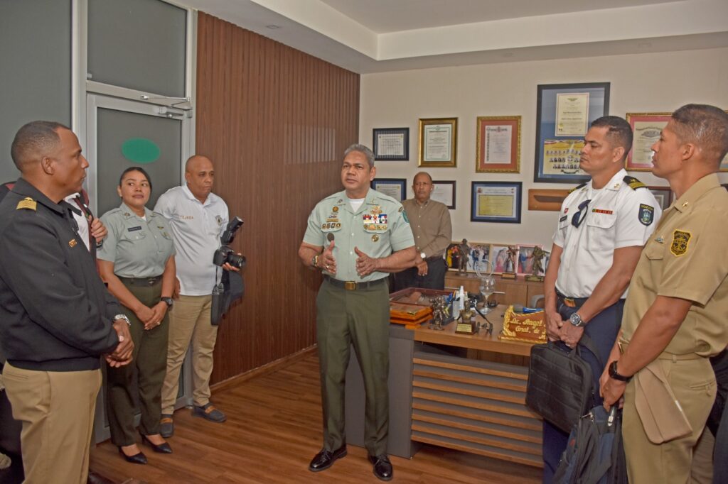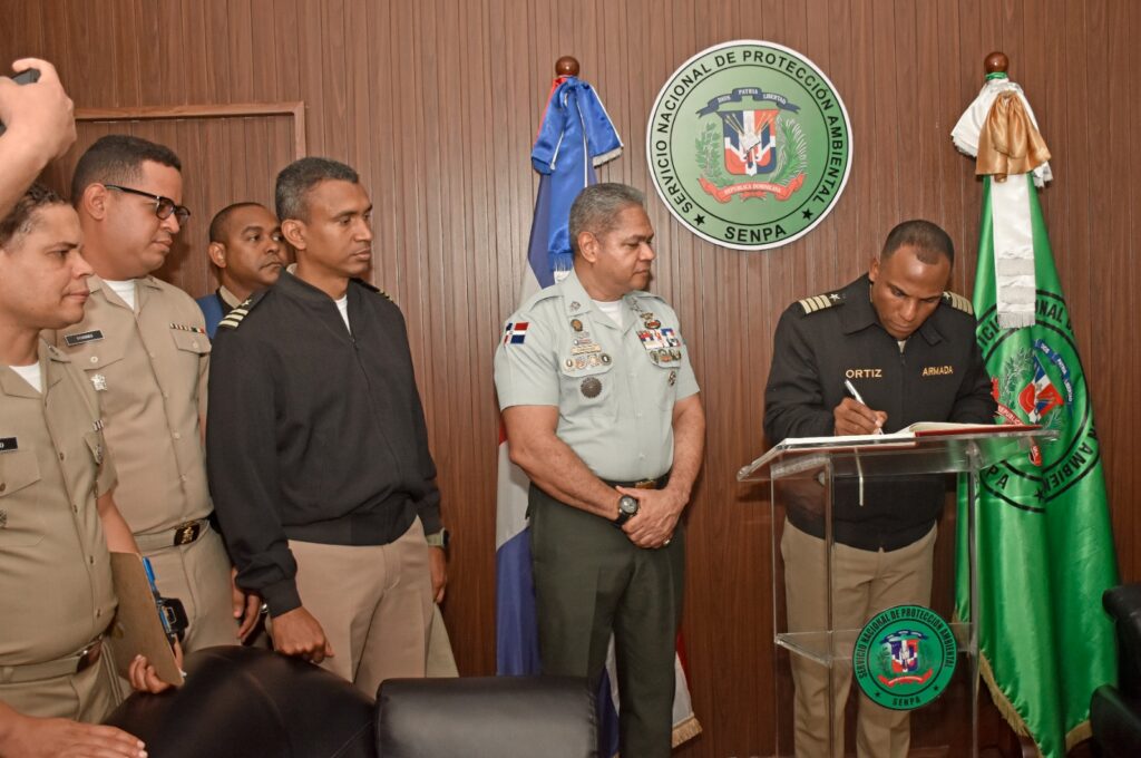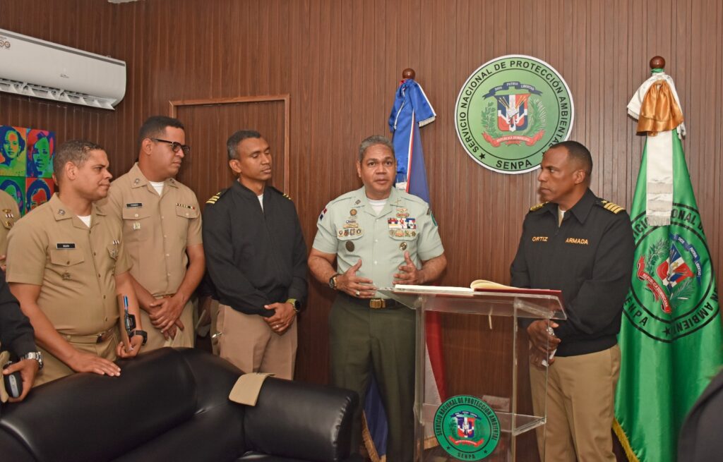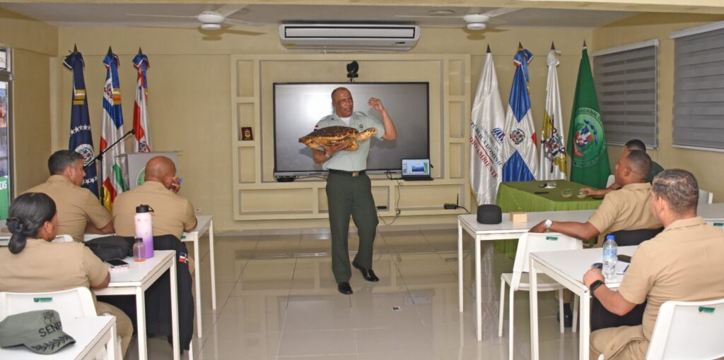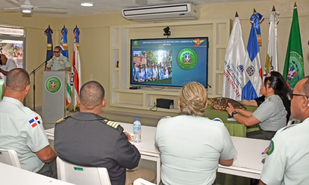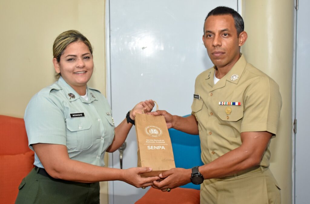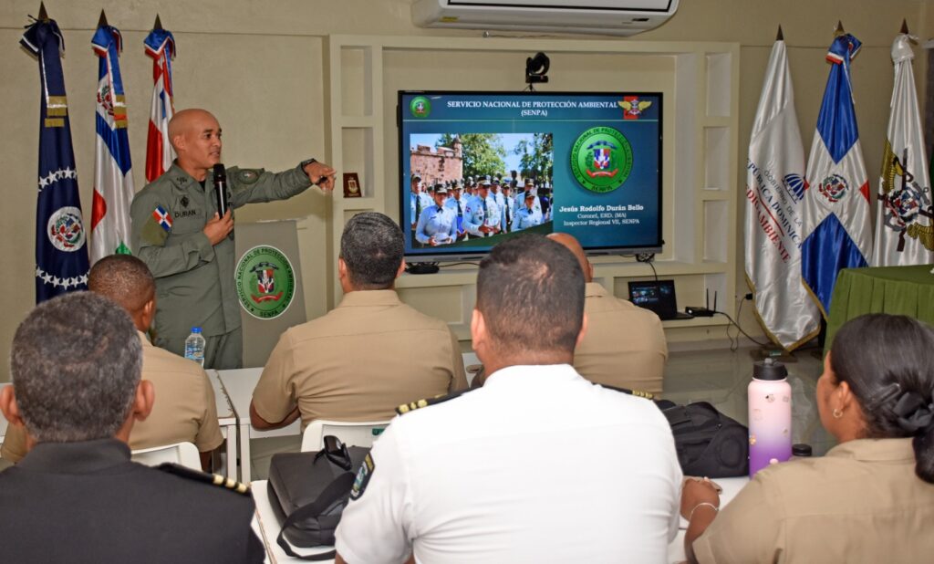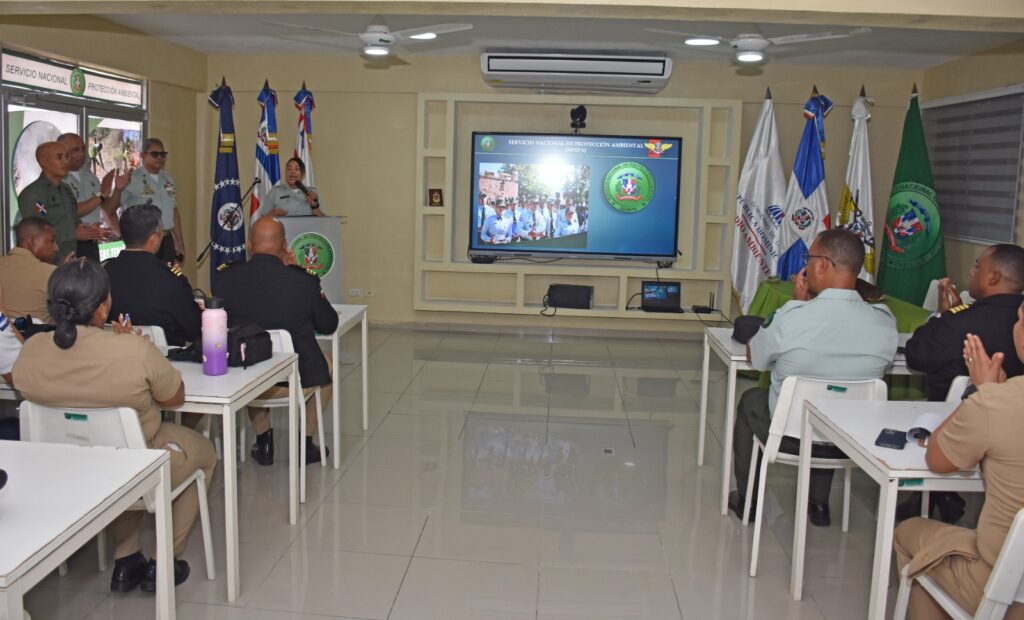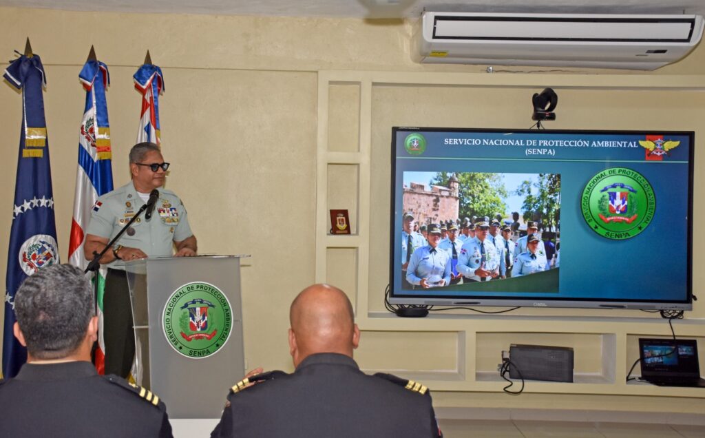 Santo Domingo, R.D. – El Servicio Nacional de Protección Ambiental (SENPA) recibió en su sede central a los Oficiales Estudiantes del Estado Mayor Naval, como parte de un programa formativo que fortalece los lazos entre cuerpos castrenses y entidades ambientales. El General de Brigada Ángel Alfredo Camacho Ubiera, ERD, Director General del SENPA, encabezó el acto, destacando el compromiso institucional para articular seguridad y protección ambiental. Los visitantes conocieron la misión del SENPA y participaron en un taller académico sobre evolución institucional, legislación ambiental y operativos estratégicos. Este espacio fue conducido por el Coronel Julio César Rodríguez Burgos, Subdirector de la Escuela del SENPA; la Coronel Piloto María Alcántara, FARD (DEM); y el Coronel Jesús Durán Bello, ERD (DEM). También se contó con la intervención de la señora Daryelin Torres, en representación del Ministerio de Medio Ambiente y Recursos Naturales, reafirmando el respaldo interinstitucional. El General Camacho agradeció al Vicealmirante Agustín Morillo Rodríguez, Comandante General de la Armada, por el compromiso en la protección de las zonas costeras y la lucha contra los delitos ambientales. La jornada concluyó con un almuerzo de confraternidad y el intercambio de presentes como símbolo de respeto y cooperación entre instituciones al servicio de la nación.