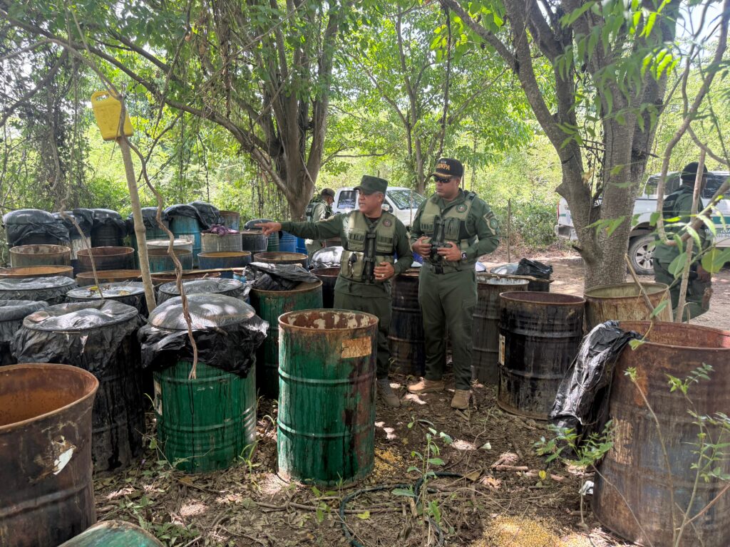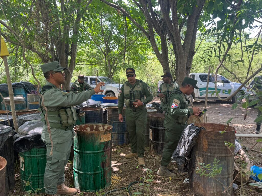 Navarrete. — En una operación conjunta y en respuesta a una denuncia ciudadana por daños ambientales en el municipio de Navarrete, el Servicio Nacional de Protección Ambiental (SENPA), junto al Cuerpo Especializado de Control de Combustibles (CECCOM), desmanteló un laboratorio clandestino dedicado a la fabricación ilegal de bebidas alcohólicas (Clerén), como resultado de una exhaustiva labor de inteligencia conducida por este organismo. El operativo fue ejecutado luego de comprobarse que el establecimiento, además de operar al margen de la ley, vertía desechos tóxicos que afectaban seriamente los suelos y cuerpos de agua de la zona. Las labores de reconocimiento, vigilancia y análisis de impacto ambiental permitieron establecer el vínculo directo entre la actividad ilícita y el foco de contaminación. Durante la intervención conjunta —que contó también con el respaldo de la Dirección General de Migración— fueron detenidos dos ciudadanos de nacionalidad haitiana, una mujer y un hombre, en el lugar de los hechos. Asimismo, fueron incautados 85 tanques de 55 galones con productos químicos, envases y otros insumos utilizados en la elaboración del Clerén. El Director General del SENPA, general de brigada Ángel Alfredo Camacho Ubiera, destacó: “Este resultado reafirma la fortaleza del trabajo en equipo y nuestro compromiso con la defensa del medio ambiente y la salud pública. La inteligencia ambiental ha sido clave para desmantelar esta operación ilegal que ponía en riesgo tanto nuestros recursos naturales como la seguridad de la población”. El SENPA exhorta a la ciudadanía a continuar denunciando cualquier práctica que atente contra el medio ambiente, y reitera su firme voluntad de fortalecer las acciones operativas y la cooperación institucional que garanticen el cumplimiento de la ley y la preservación del entorno.
