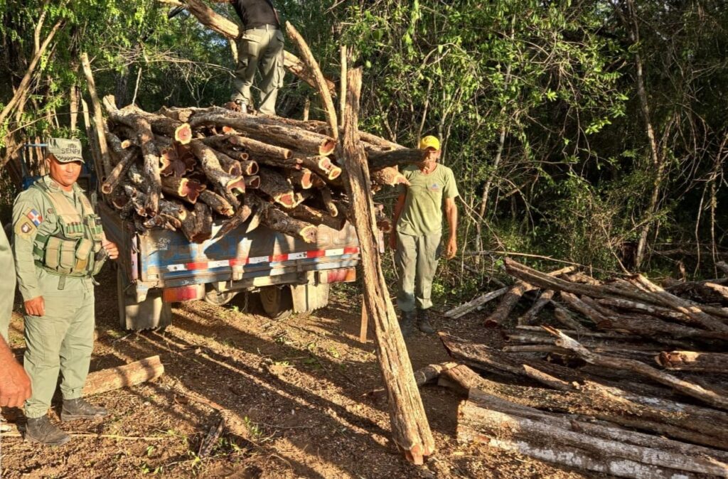 Santo Domingo.– Miembros del Servicio Nacional de Protección Ambiental (SENPA), junto a la directora provincial de Medio Ambiente, la asesora jurídica, bomberos forestales y guardabosques, realizaron un operativo en el sector Laja Esperón, provincia Dajabón, donde fueron incautados 735 postes de la especie Campeche, cortados sin los permisos ambientales correspondientes. Asimismo, en el tramo carretero Bayaguana–Monte Plata, provincia Monte Plata, miembros del SENPA, acompañados por el director provincial de Medio Ambiente, interceptaron un camión marca International, color rojo, que transportaba 96 trozas de madera de la especie Acacia magium sin carta de ruta ni autorización ambiental.